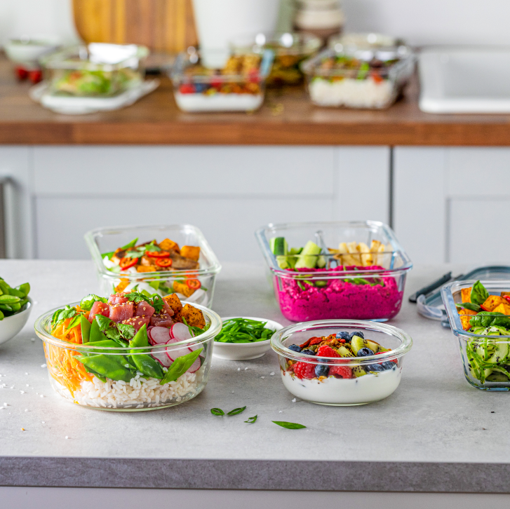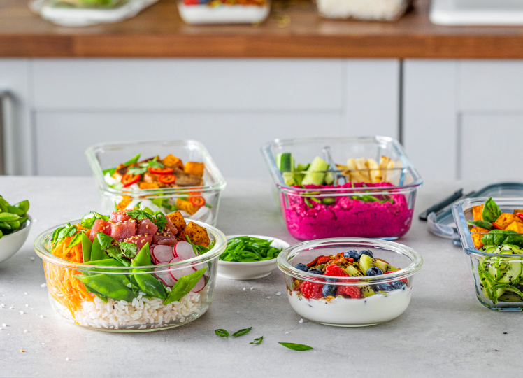 Contenitori riutilizzabili in plastica e vetro per la preparazione dei pasti. Senza BPA e sicuri per gli alimenti, per tutte le vostre esigenze di conservazione.