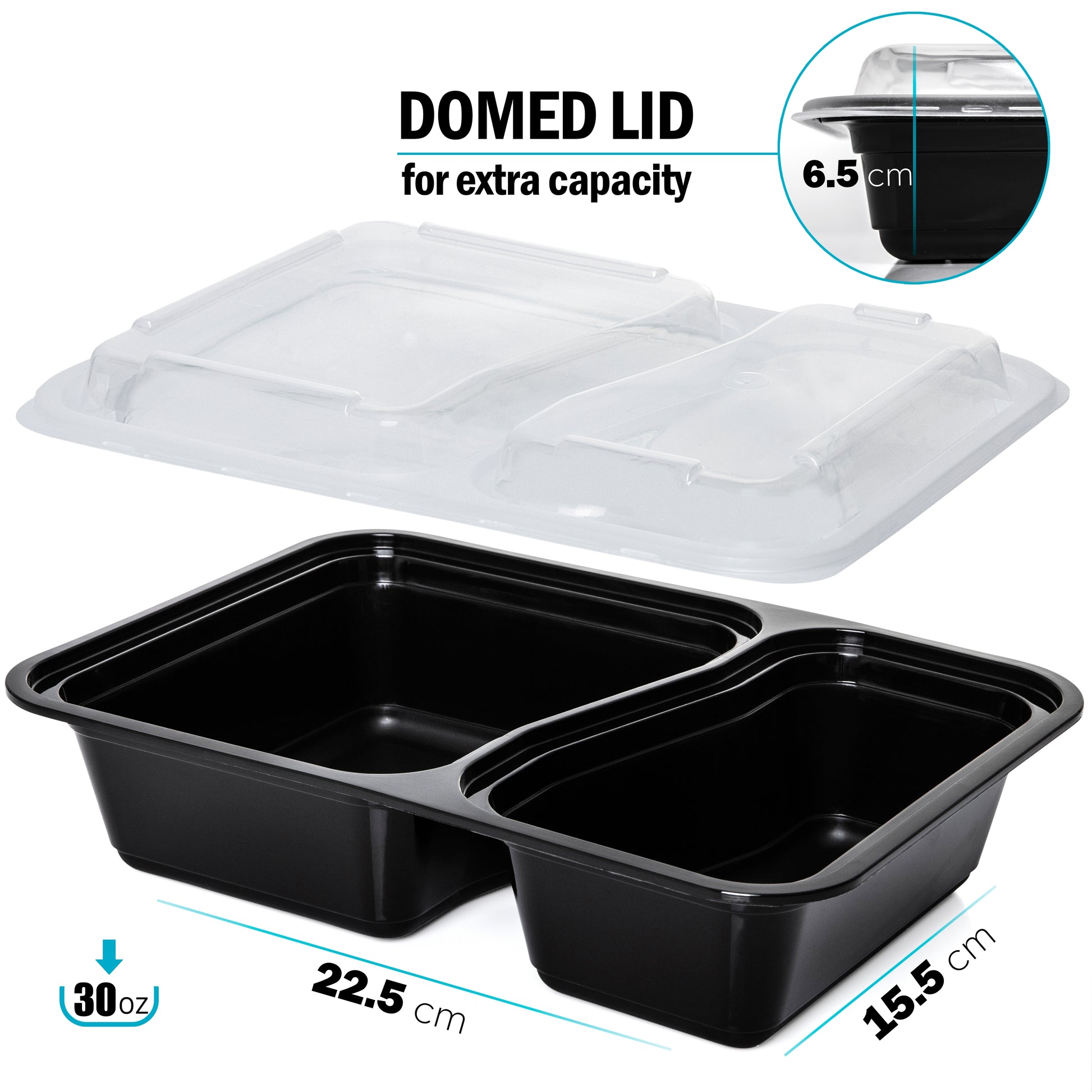 2-Compartment Reusable Containers with Airtight Lids - 887ml