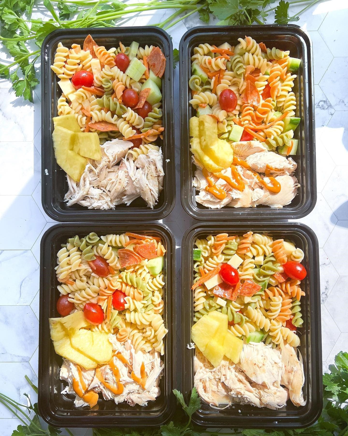 Inoltre, i nostri contenitori di plastica sono impilabili e non macchiano, il che significa che ogni contenitore per la preparazione dei pasti può essere riutilizzato ogni giorno e conservato facilmente, anche quando è pieno.