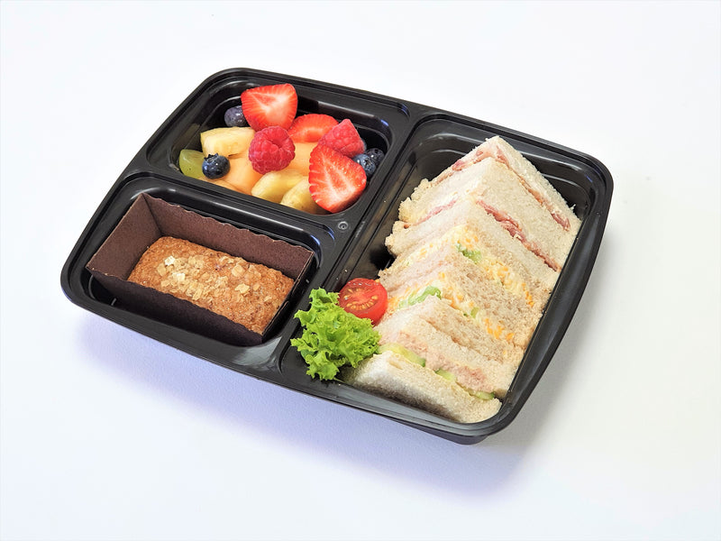Ho acquistato le scatole per la preparazione del cibo a tre scomparti da utilizzare nella cucina di una scuola per trasportare i pasti caldi.